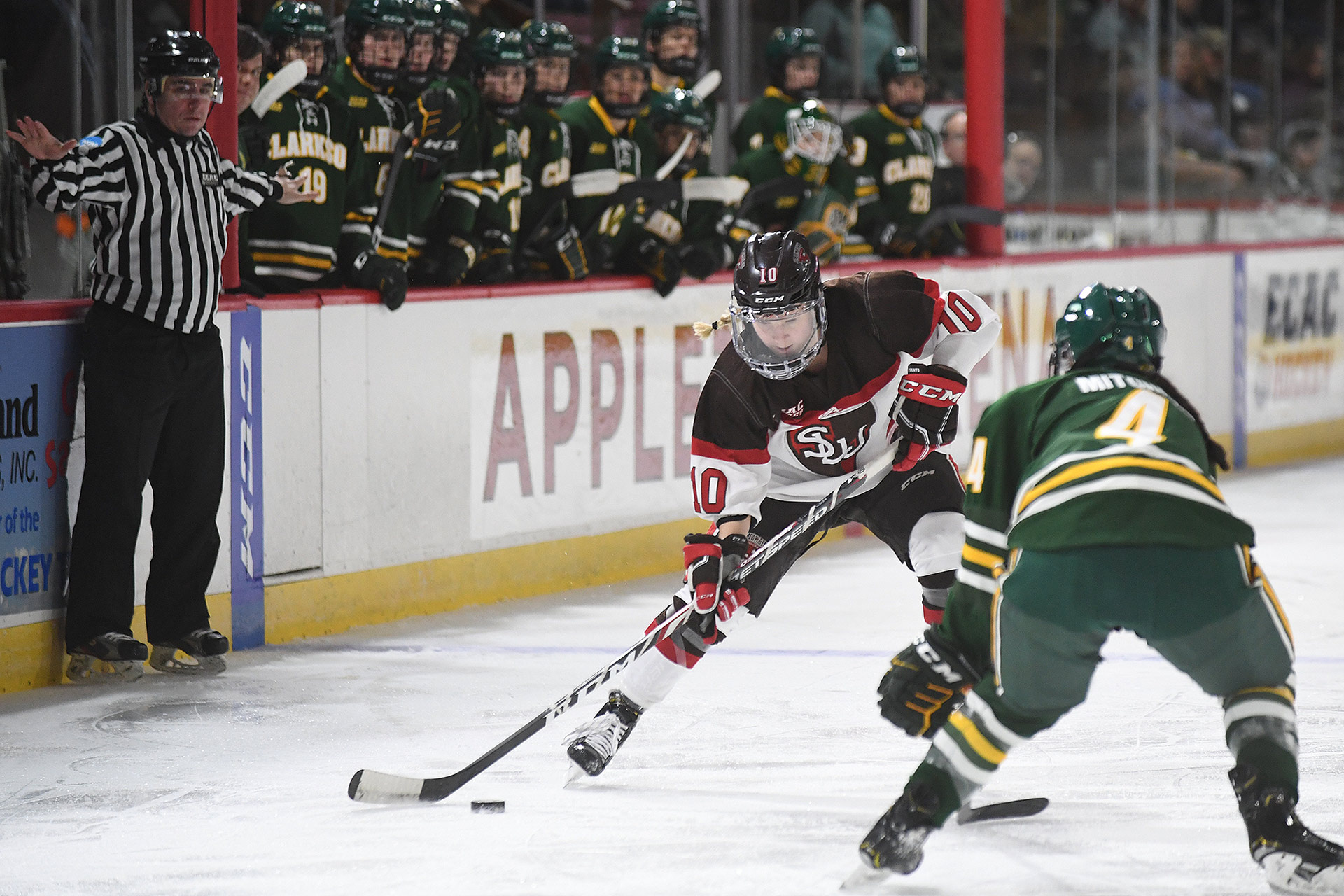 When Clarkson comes to town, there’s no better place to be than the student section—especially in Appleton Arena. Decked out in Scarlet and Brown, the Laurentian and Canton communities pack the stands to cheer on the Saints in one of the year’s most anticipated matchups against the Golden Knights.